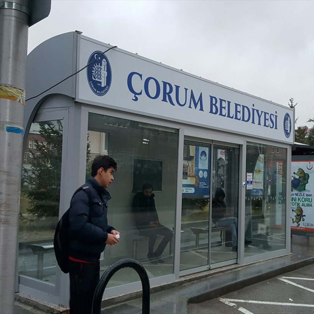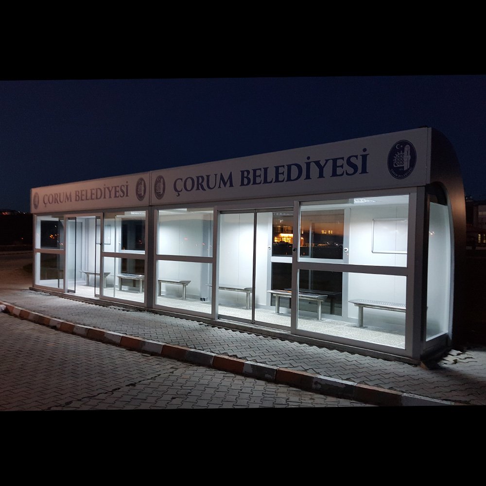 Çorum Belediyesi Kapalı Durak Uygulamamız (Klimalı, Enerjisini Güneş Panellerinden Alıyor)