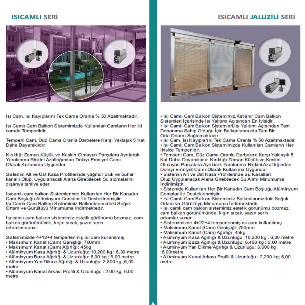 Cam balkon-kış bahçesi günümüzde sıklıkla tercih edilen ürün seçeneklerinden birisidir.Bu ürün ile balkon keyfi yapmak için yazı beklemenize gerek kalmaz.Dört mevsim kullanıma olanak sağlayan ürün yaptırmak istediğiniz bölgeye göre kesim yapılarak hazırlanır.Kış bahçesi için boydan boya cam ile balkonunuz ya da yaptırmak istediğiniz alan kapatılır.Cam ile kapatma işleminde soğuk girmemesi için cam araları sıkı bir şekilde kapatılır.Ancak bu sizi camların açılamayacağı gibi bir düşünceye yöneltmesin.Camlar siz istediğiniz zaman açılabilecek nitelikte hazırlanır.Soğuktan korum işlemi ise camlar kapatıldığı zaman arada hava kaçacağına izin vermeyecek şekilde sıkı birleşmesi prensibine bağlıdır. Bu ürünlerin kullanımı aynı zamanda bulunulan mekana ferah bir hava katılmasını da sağlar.Ayrıca kullanılan malzeme cam olduğu için içeri güneş ışığının girmesine olanak verir ve aydınlık bir ortam yaratır.Estetik bir görünümü olan ürün aynı zamanda kolay montaj özelliğine de sahiptir.